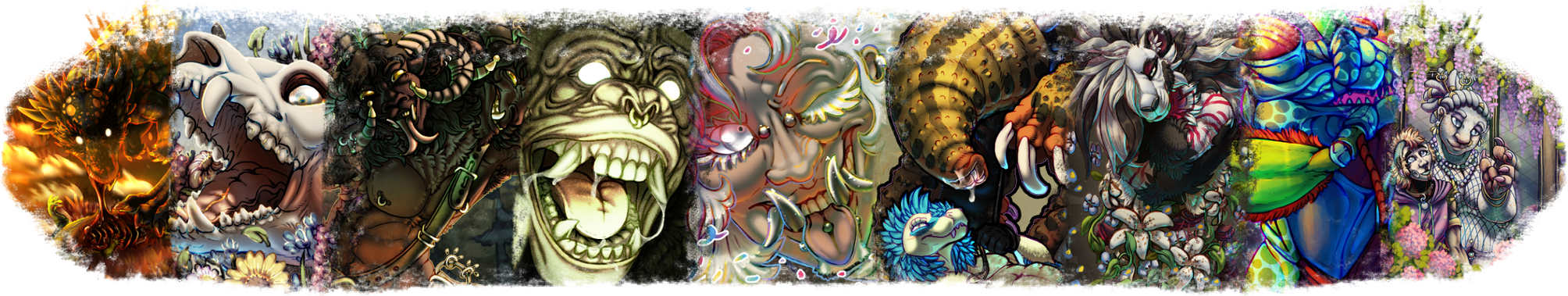 I am a 31 year old nonbinary artist who grew up in Appalachia savoring folklore intermingled with a love for rainbow and morbid aesthetics. Almost entirely self taught, I have taken weekly art classes for a few years as well as usual school art classes where I tried various mediums. Otherwise online courses, tutorials, and fellow artists are my inspirations and mentors. You can consider me a furry, though I am not too heavily leaned into active socializing these daysAll information can be found in the links provided and any further questions you might have you can ask through email!